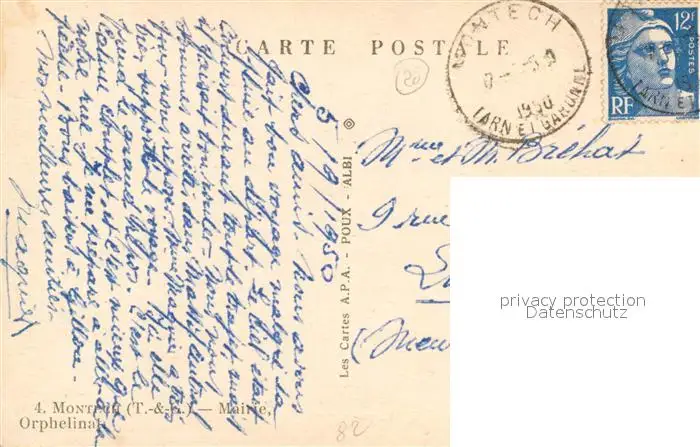 Montech Mairie Orphelinat Montech postalisch gelaufen 1950 Erhaltung siehe scans [FriedD77] Frierer