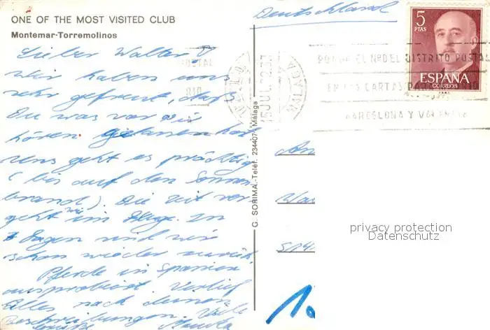 Montemar Torremolinos Club Tabu Montemar postalisch gelaufen 1972 Erhaltung siehe scans [LiesaD40] LiesID40