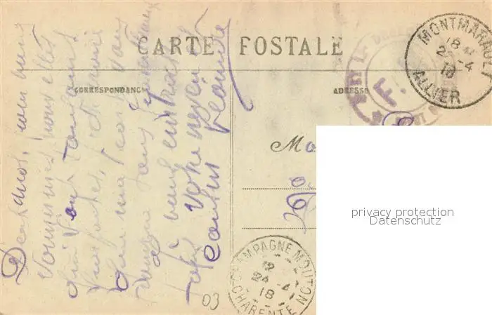 Montmarault Route de Montlucon Montmarault postalisch gelaufen 1918 Feldpostkarte Erhaltung siehe scans [FriedD77] Feldpostkarte Frierer
