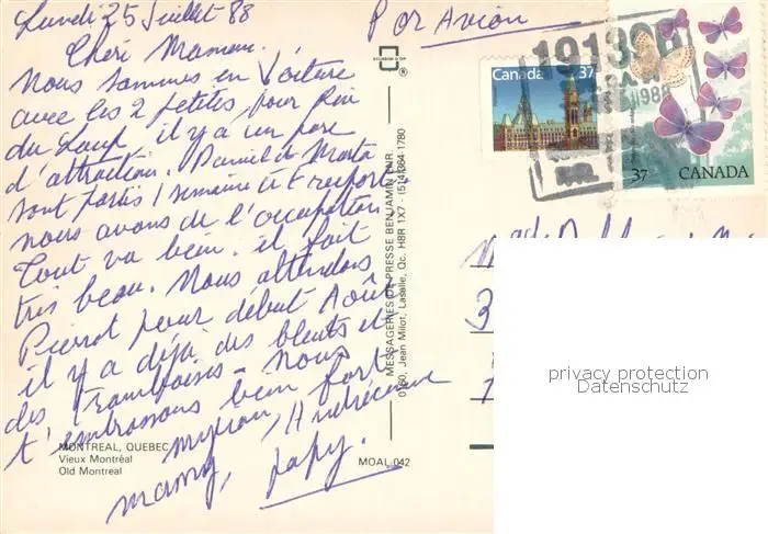 Montreal_Quebec Vieux Montréal Pferdedroschken Montreal Quebec postalisch gelaufen 1988 Erhaltung siehe scans [FriedD77] Frierer