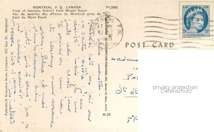 Montreal_Quebec View of business district from Mount Royal Montreal Quebec postalisch gelaufen 1969 Erhaltung siehe scans [WerneD78] WernPID7