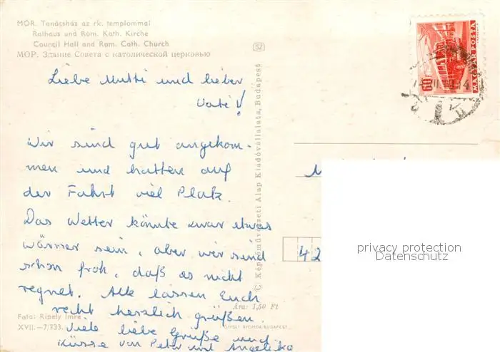 Mor_HU Rathaus und Roem Kath Kirche postalisch gelaufen nach 1965 Erhaltung siehe scans [FriedD77] Frierer