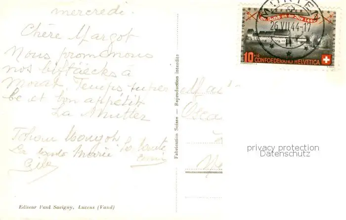 Morat_Murten_FR Grand rue postalisch gelaufen 1944 Erhaltung siehe scans [WerneD78] WernPID7