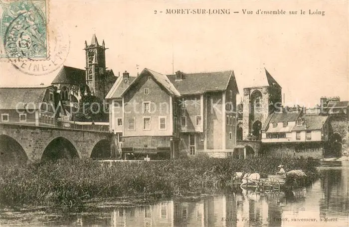 Moret-sur-Loing Vue d ensemble sur le Loing Moret-sur-Loing postalisch gelaufen bis 1920 Erhaltung siehe scans [LiesaD40] LiesID40
