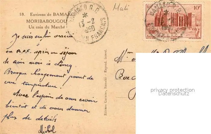Moribabougou_Mali Un coin du marché postalisch gelaufen 1950 Erhaltung siehe scans [FriedD77] Frierer