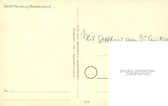 Moritzburg_Sachsen Schloss Barockmuseum Moritzburg Sachsen postalisch nicht gelaufen 1950 Erhaltung siehe scans [FriedD77] Frierer