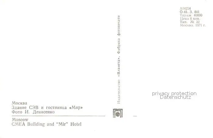 Moscow_Moskva CMEA Building and Mir Hotel Moscow Moskva postalisch nicht gelaufen nach 1965 Erhaltung siehe scans [WerneD78] WernPID7
