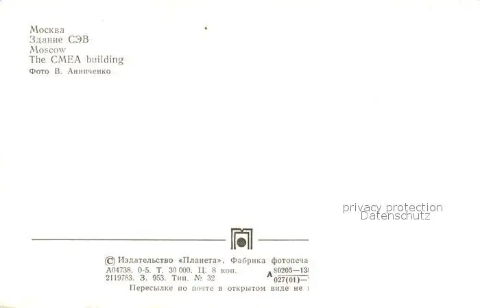 Moscow_Moskva CMEA building Moscow Moskva postalisch nicht gelaufen 1921-1965 Keine Postkarte (siehe scan) Erhaltung siehe scans [NatalD47] Keine Postkarte (siehe scan) NataID47
