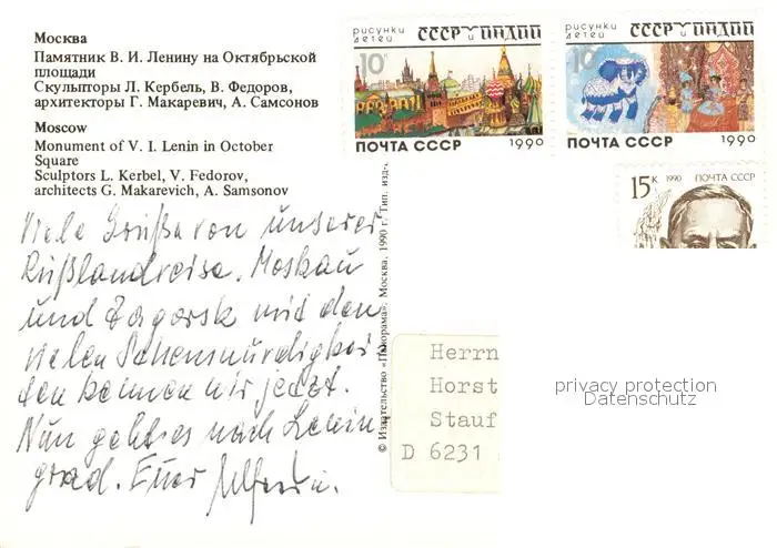 Moscow_Moskva Monument of V. I. Lenin in October Square Denkmal Statue Moscow Moskva postalisch gelaufen 1990 Erhaltung siehe scans [FriedD77] Frierer