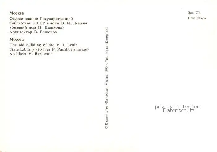 Moscow_Moskva Old Building of Lenin State Library Moscow Moskva postalisch nicht gelaufen nach 1965 Erhaltung siehe scans [FriedD77] Frierer