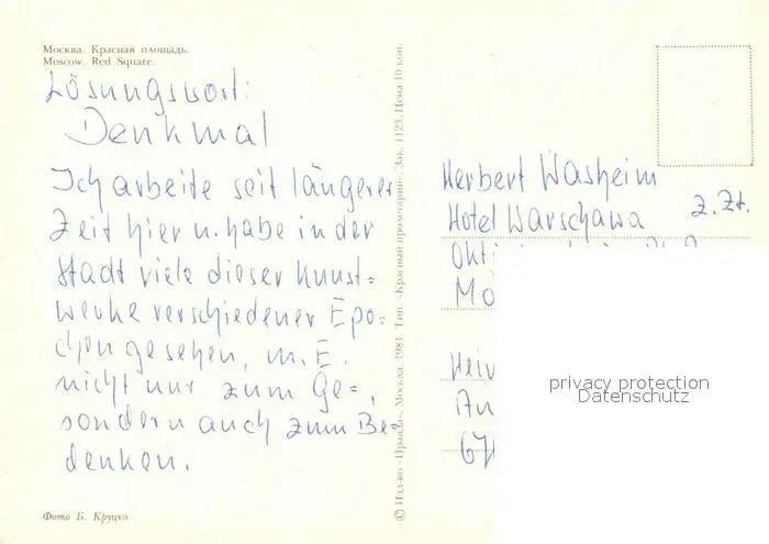Moscow_Moskva Red Square Moscow Moskva postalisch nicht gelaufen nach 1965 Erhaltung siehe scans [WerneD78] WernPID7