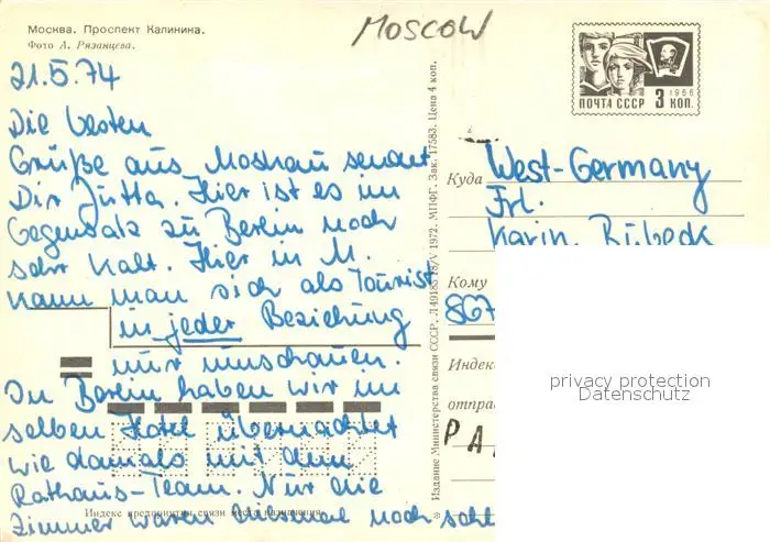 Moscow_Moskva Strassenpartie Moscow Moskva postalisch gelaufen 1974 Erhaltung siehe scans [WerneD78] WernPID7