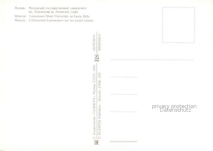 Moscow_Moskva Universitaet Moscow Moskva postalisch nicht gelaufen nach 1965 Erhaltung siehe scans [NatalD47] NataID47