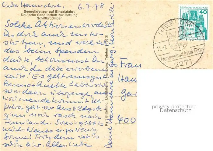 Motorboote Seenotkreuzer Motorboote postalisch gelaufen 1978 Erhaltung siehe scans [PaolaD17] PaolPID1