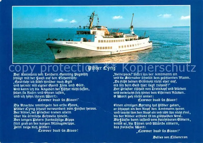 AK / Ansichtskarte Motorschiffe MS Pidder Lyng Gedicht Detlev von Liliencron Motorschiffe
