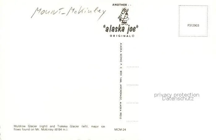 Mount_McKinley_Alaska Major Glaciers postalisch nicht gelaufen 1921-1965 Erhaltung siehe scans [KathaD81] Kathoren