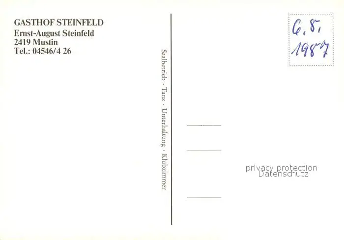 Mustin_Ratzeburg Gasthof Steinfeld Mustin_Ratzeburg postalisch nicht gelaufen 1987 Erhaltung siehe scans [FriedD77] Frierer
