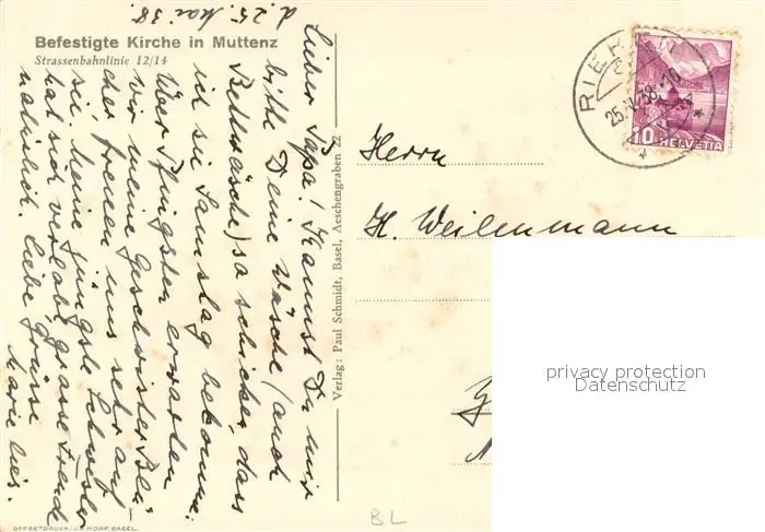 Muttenz Befestigte Kirche Muttenz postalisch gelaufen 1938 Erhaltung siehe scans [WerneD78] WernPID7