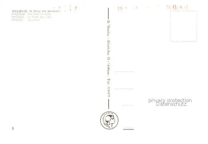 Mykene Loewentor Ruine Antike Staette Mykene postalisch nicht gelaufen nach 1965 Erhaltung siehe scans [FriedD77] Frierer