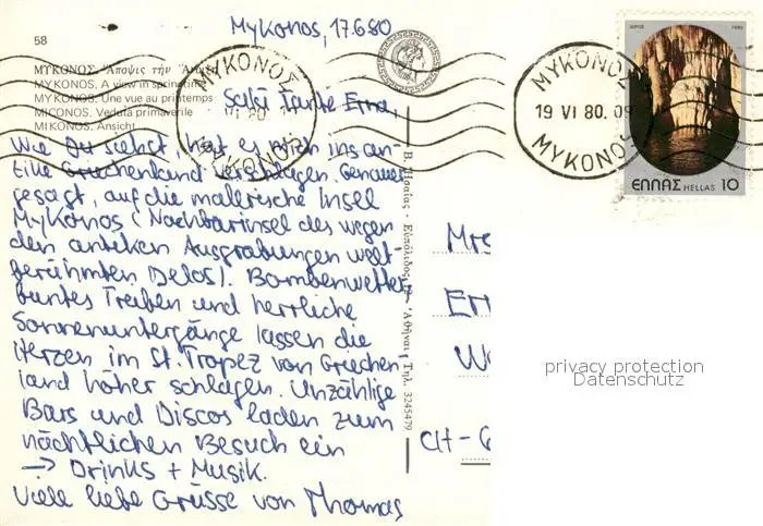 Mykonos Panorama MyKonos postalisch gelaufen 1980 Erhaltung siehe scans [KathaD81] Kathoren