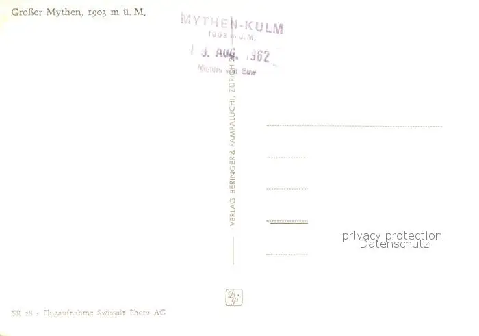 Mythen-Kulm_SZ Grosser Mythen postalisch nicht gelaufen 1962 Erhaltung siehe scans [WerneD78] WernPID7