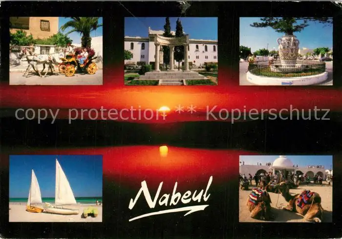 AK / Ansichtskarte Nabeul Camele Strand Pferdekutsche Segelboote Nabeul