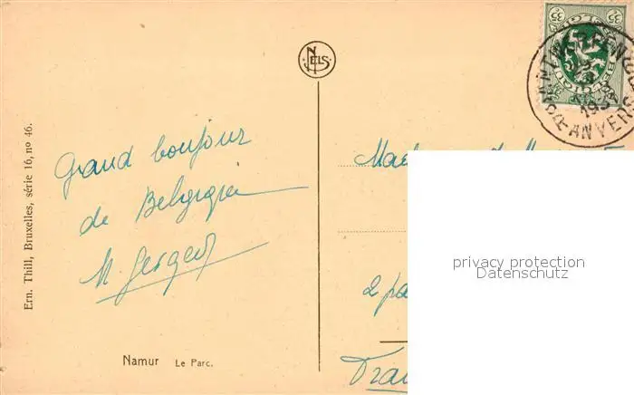 Namur_sur_Meuse Parc Namur_sur_Meuse postalisch gelaufen 1931 Erhaltung siehe scans [PaolaD17] PaolPID1