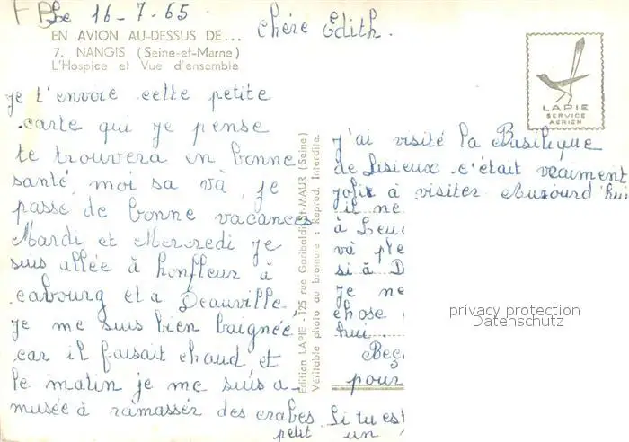 Nangis Hospice et vue d'ensemble aérienne Nangis postalisch nicht gelaufen 1965 Erhaltung siehe scans [FriedD77] Frierer