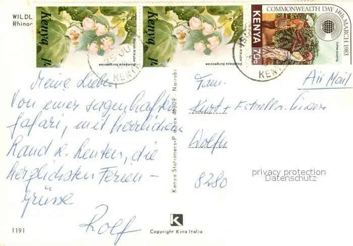 Nashorn Afrika Nashorn postalisch gelaufen nach 1965 Erhaltung siehe scans [PaolaD17] PaolPID1