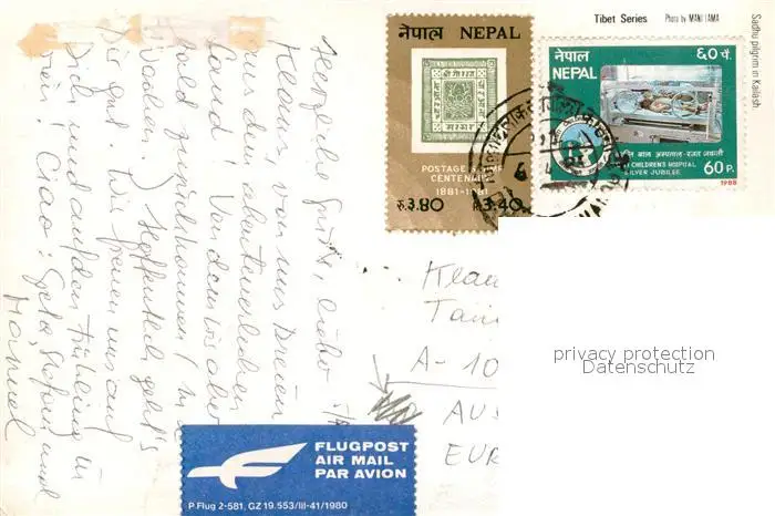 Nepal Nepalese Nepal postalisch gelaufen 1988 Erhaltung siehe scans [FriedD77] Frierer