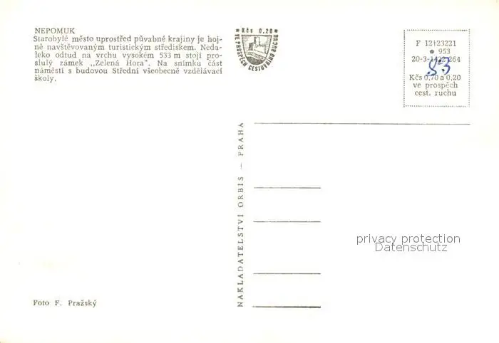 Nepomuk Starobyle mesto uprostred puvabne krajiny je hojne navistevovanym turistickym strediskem Nepomuk postalisch nicht gelaufen nach 1965 Erhaltung siehe scans [WerneD78] WernPID7
