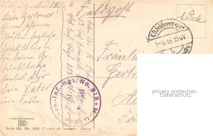 Nervi Panorama Nervi postalisch gelaufen 1916 Feldpost Erhaltung siehe scans [WerneD78] Feldpost WernPID7