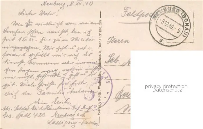 Neuburg__Donau Schloss postalisch gelaufen 1940 Feldpost auf Karte (Motiv) Erhaltung siehe scans [WerneD78] Feldpost auf Karte (Motiv) WernPID7