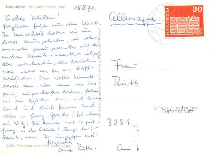 Neuchatel_NE Vue aérienne du port Neuchatel NE postalisch gelaufen 1971 Fliegeraufnahme Erhaltung siehe scans [FriedD77] Fliegeraufnahme Frierer