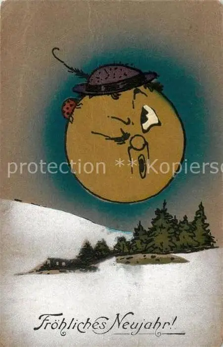 AK / Ansichtskarte Neujahr Mond Vermenschlicht