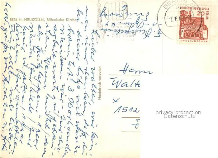 Neukoelln Boehmische Kirche Neukoelln postalisch gelaufen 1967 Erhaltung siehe scans [LiesaD40] LiesID40