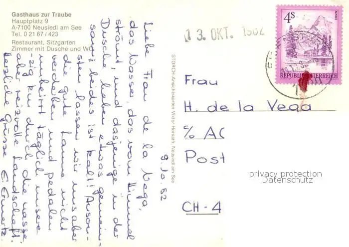Neusiedl_See Gasthaus zur Traube Neusiedl See postalisch gelaufen 1982 Erhaltung siehe scans [FriedD77] Frierer