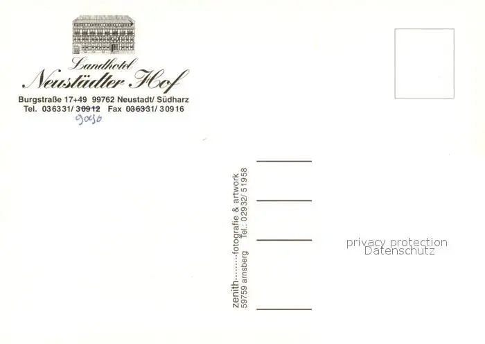 Neustadt_Harz Landhotel Neustaedter Hof Neustadt_Harz postalisch nicht gelaufen nach 1965 Erhaltung siehe scans [FriedD77] Frierer