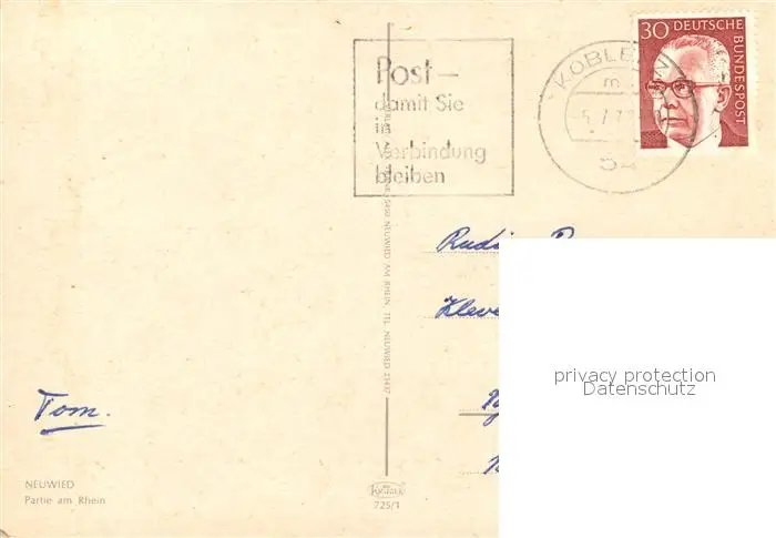 Neuwied_Rhein Rheinpartie Neuwied Rhein postalisch gelaufen nach 1965 Erhaltung siehe scans [LiesaD40] LiesID40