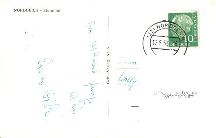 Norddeich__Norden_Nordseebad Sturmflut postalisch gelaufen 1955 Erhaltung siehe scans [WerneD78] WernPID7