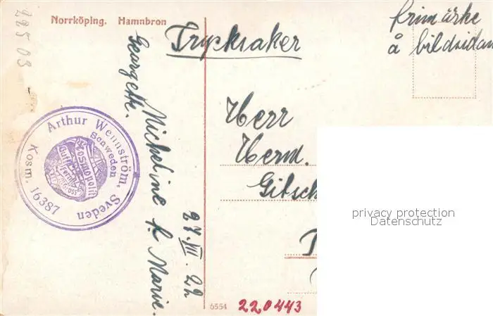 Norrkoeping Hamnbron Norrkoeping postalisch gelaufen 1922 Erhaltung siehe scans [WerneD78] WernPID7