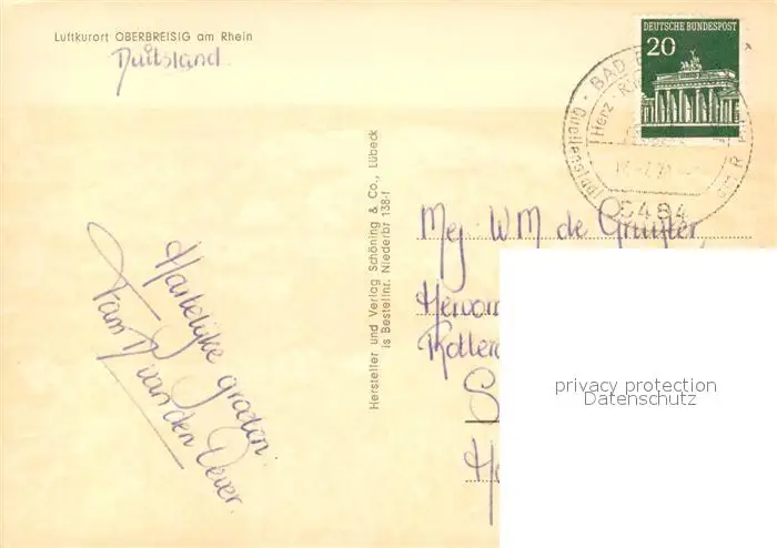 Oberbreisig Kategorie Alte Ansichtskarten Postkarten bx54577 Oberbreisig Oberbreisig postalisch gelaufen 1971 Erhaltung siehe scans [NatalD47]