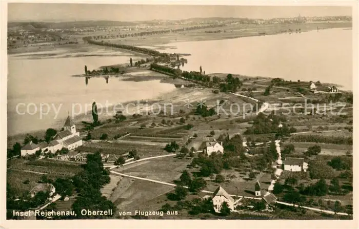 Oberzell_Reichenau Insel Reichenau Oberzell Reichenau postalisch gelaufen 1921-1965 Fliegeraufnahme Erhaltung siehe scans [FriedD77] Fliegeraufnahme Frierer
