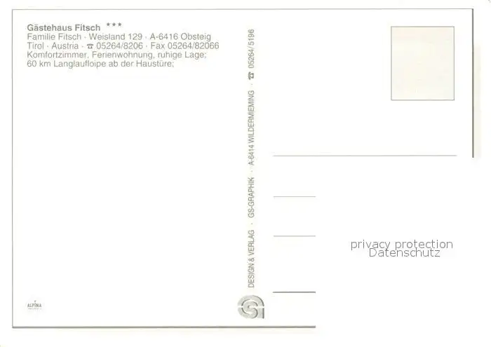 Obsteig_Tirol Gaestehaus Fitsch Gaststube Zimmer Obsteig_Tirol postalisch nicht gelaufen nach 1965 Erhaltung siehe scans [WerneD78] WernPID7