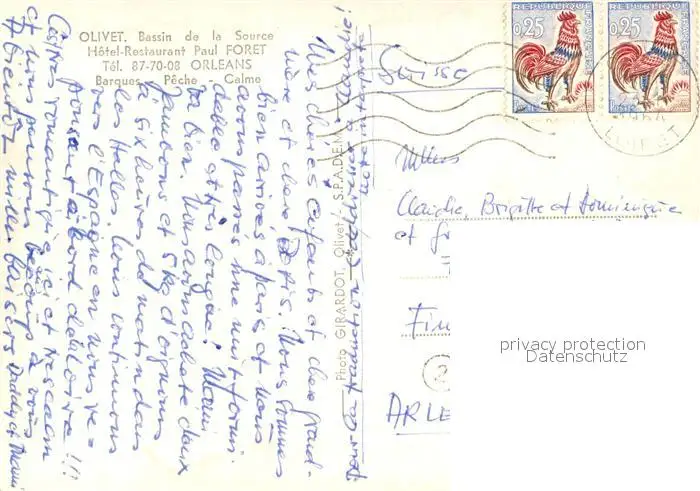Olivet_Loiret Hotel Restaurant Paul Foret Olivet Loiret postalisch gelaufen nach 1965 Erhaltung siehe scans [KathaD81] Kathoren