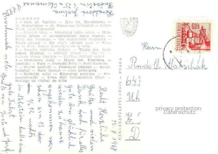 Olomouc Dom Vaclava Olomouc postalisch gelaufen 1968 Erhaltung siehe scans [LiesaD40] LiesID40
