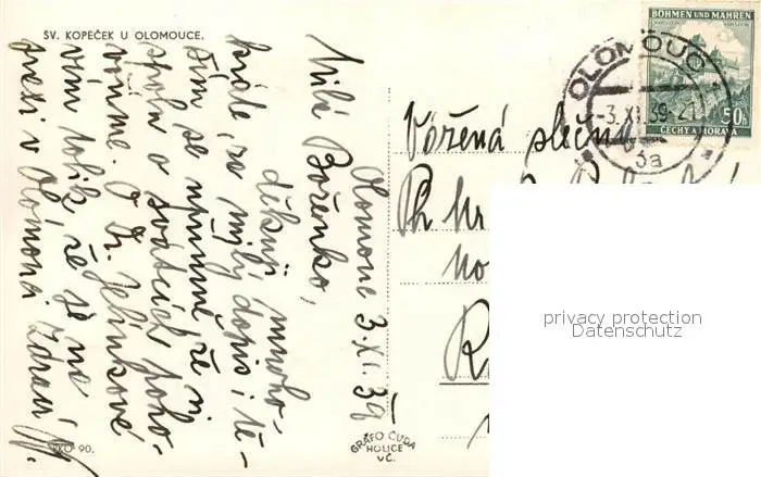 Olomouce Sv Kopecek Olomouce postalisch gelaufen 1939 Erhaltung siehe scans [WerneD78] WernPID7