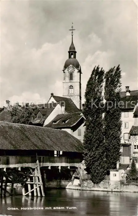 AK / Ansichtskarte Olten_SO Holzbruecke mit altem Turm