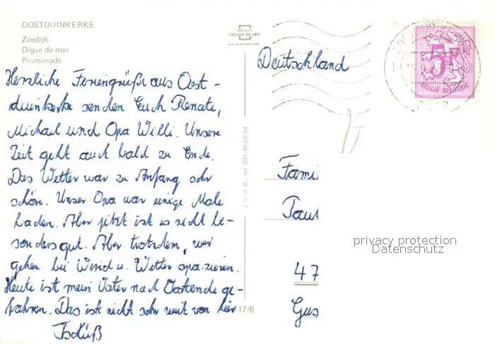 Oostduinkerke Zeedijk Promenade Oostduinkerke postalisch gelaufen 1976 Erhaltung siehe scans [FriedD77] Frierer
