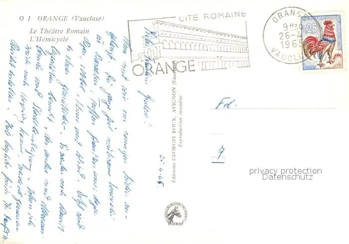 Orange Théâtre Romain Hémicycle Amphitheater Orange postalisch gelaufen 1965 Erhaltung siehe scans [FriedD77] Frierer